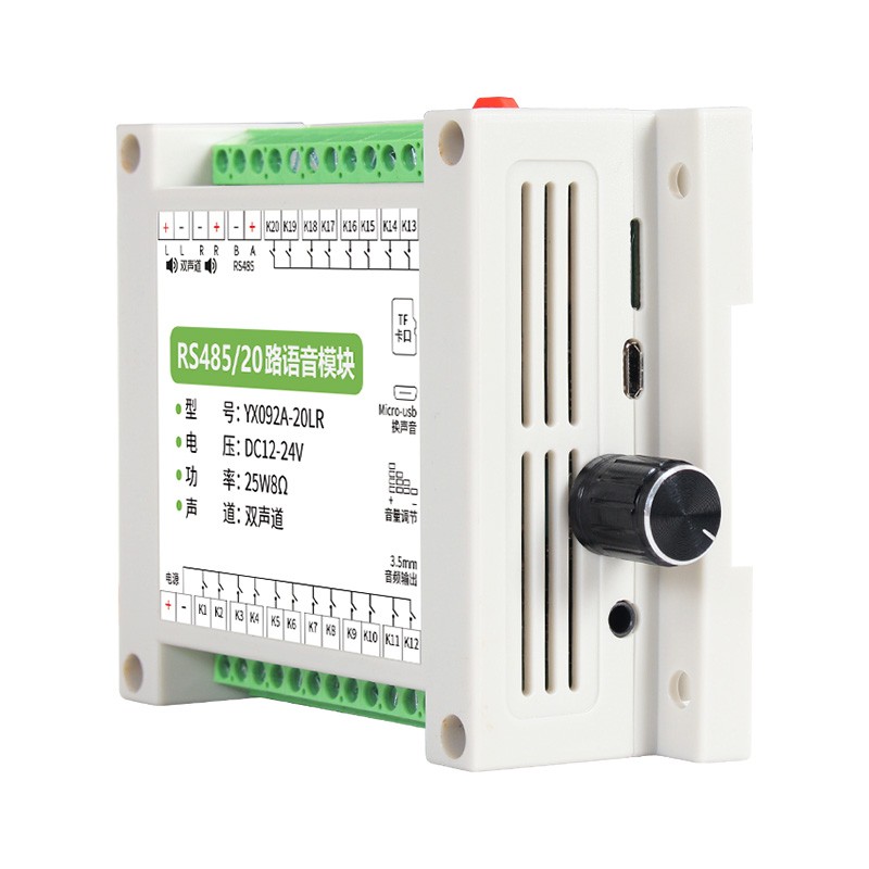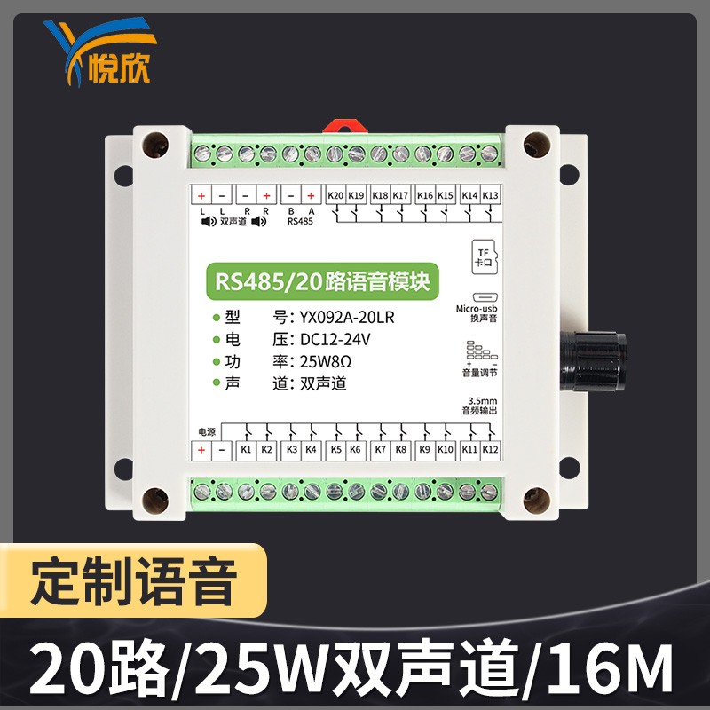 YX092A-20LRÊDZØÓ®ÑÇÖÞµç×ÓÍÆ³öµÄÒ»¿î³¬¿áµÄ¹¦·ÅÓïÒôºÐ£¬Ö§³Ö½ÚÔì20·¿ª¹ØÁ¿£¡Ëü²»½ö¿ÉÄܲ¥±¨ÓïÒô£¬»¹Ö§³Ö485´®¿ÚͨѶŶ¡£ÄÚÖÃ¸ßÆ·ÖÊ24λÒôƵ½âÂëÆ÷ºÍÁ¢ÌåÉùÊä³ö£¬°åÔØ2¡Á25ÍßDÀà·Å´óÆ÷£¬Äܹ»Ö±½ÓÏνÓÁ½¸ö8Å·10-25WÑïÉùÆ÷½øÐÐ×óÓÒÉù·Êä³ö¡£